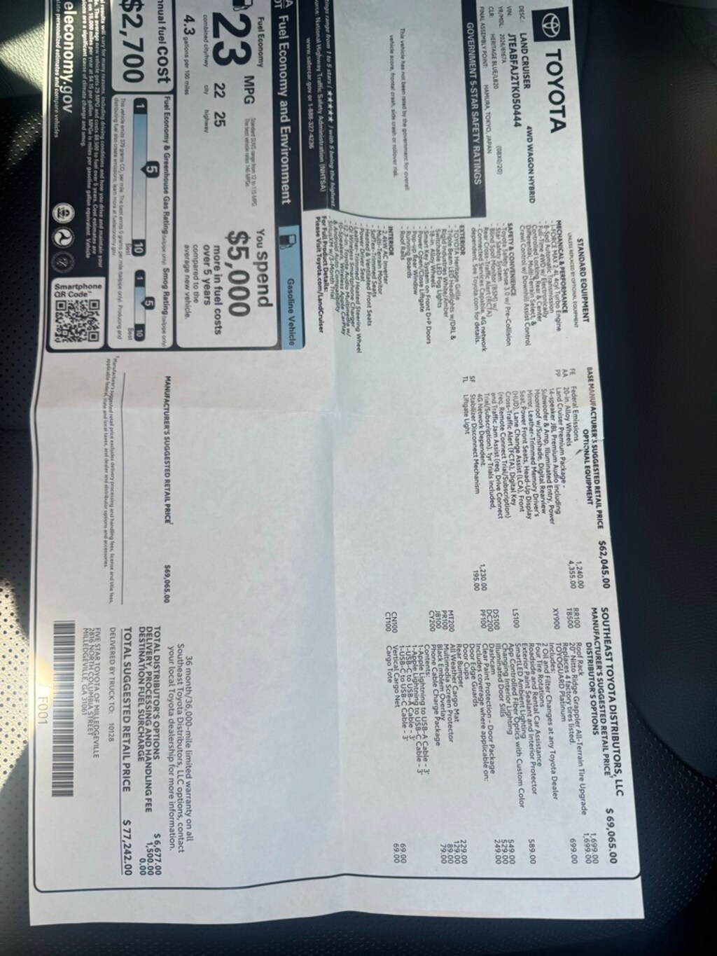 ORIGIINAL MSRP $77,242.00